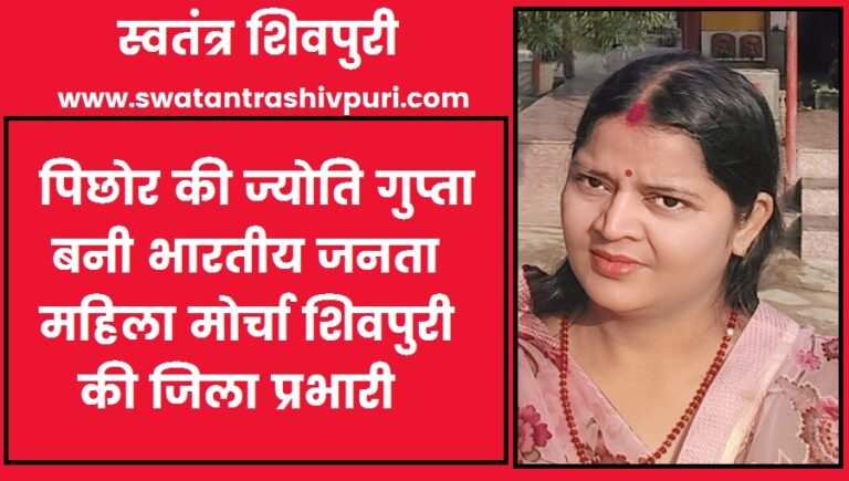 पिछोर की ज्योति गुप्ता बनी भारतीय जनता महिला मोर्चा शिवपुरी की जिला प्रभारी