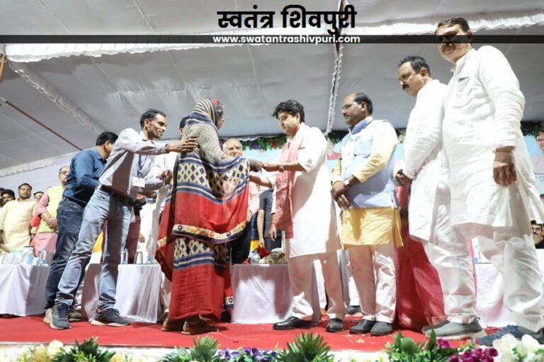 शिवपुरी। दो दिवासीय दौरे पर शिवपुरी आए केन्द्रीय मंत्री ज्योतिरादित्य सिंधिया ने शिवपुरी के चीलौद क्षेत्र में एक विशाल आम