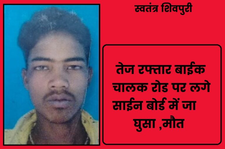 तेज रफ्तार बाईक चालक रोड पर लगे साईन बोर्ड में जा घुसा ,मौत