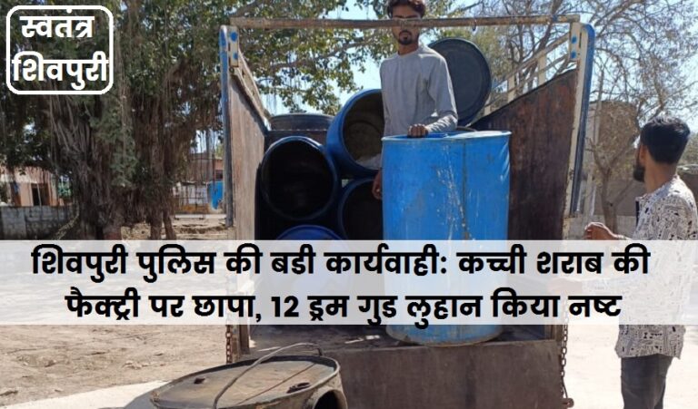 READ MOREशिवपुरी। आज शिवपुरी पुलिस ने बडी कार्यवाही को अंजाम देते हुए एक कच्ची शराब की फैक्ट्री पर छापामार कार्यवाही की
