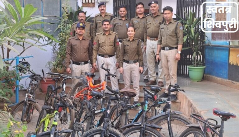 READ MOREशिवपुरी। आज कोतवाली पुलिस ने साईकिल चोर को पकडा है। उक्त चोर से पुलिस ने 11 साईकिल बरामद की है।
