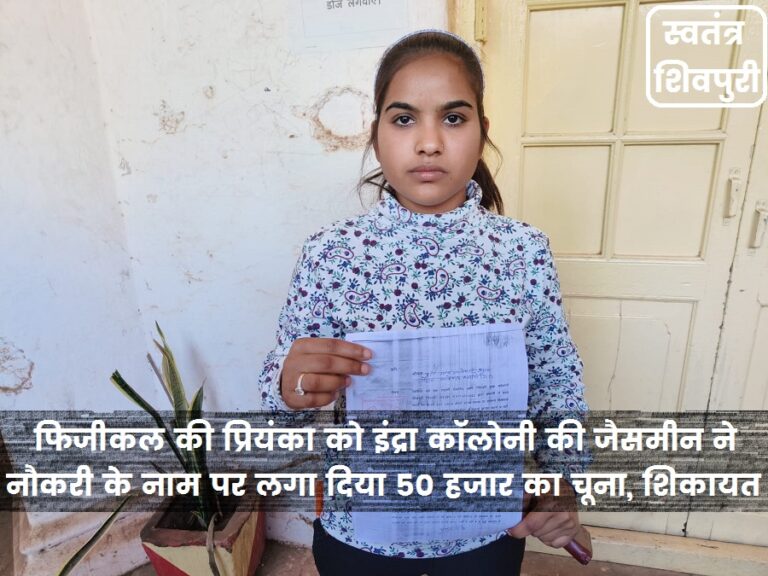 READ MOREशिवपुरी। आज जनसुनवाई में अपनी फरियाद लेकर पहुंची एक युवती ने शहर की ही एक दूसरी युवती पर नौकरी के