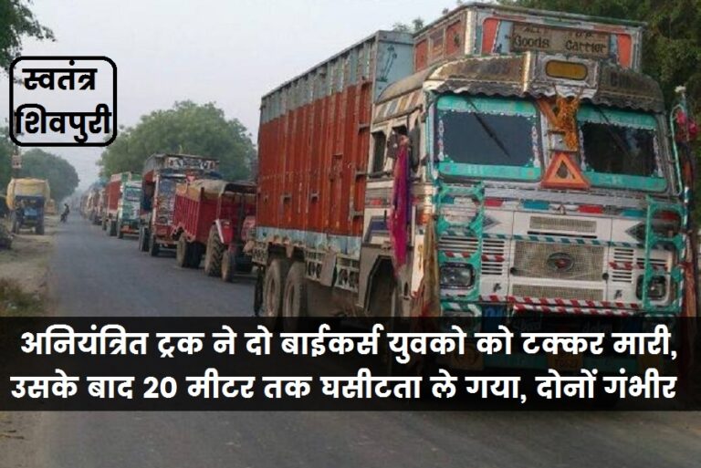 अनियंत्रित ट्रक ने दो बाईकर्स युवको को टक्कर मारी,उसके बाद 20 मीटर तक घसीटता ले गया, दोनों गंभीर