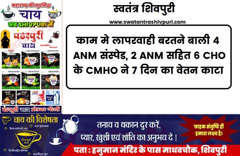 शिवपुरी। जिले में आज सीएमएचओं ने अपने विभाग में लापरवाही करने बाले कर्मचारिये पर कार्यवाही की है। इस कार्यवाही में