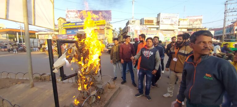 शिवपुरी में बागेश्वर धाम सरकार के खिलाफ अपमान जनक टिप्पणी करने बाले श्याम मानव का फूंका पुतला