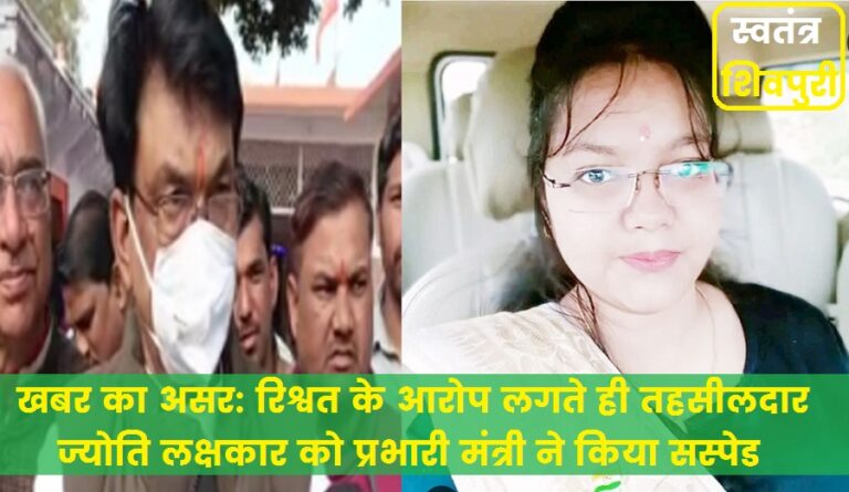 खबर का असर: रिश्वत के आरोप लगते ही तहसीलदार ज्योति लक्षकार को प्रभारी मंत्री ने किया सस्पेड