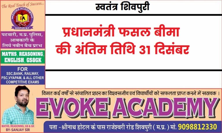 READ MOREशिवपुरी । प्रधानमंत्री फसल बीमा योजना की प्रीमियम किश्त जमा करने की अंतिम तिथि 31 दिसम्बर नियत की गई है।