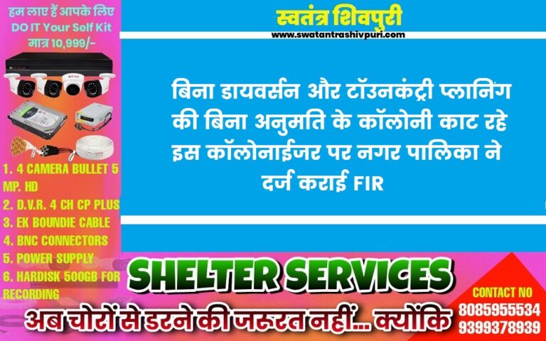 READ MOREशिवपुरी। अवैध कॉलोनी काटने के मामले में नगर पालिका के आरआई सुधीर मिश्रा ने एक कॉलोनाईजर शिवचरण बाथम के खिलाफ