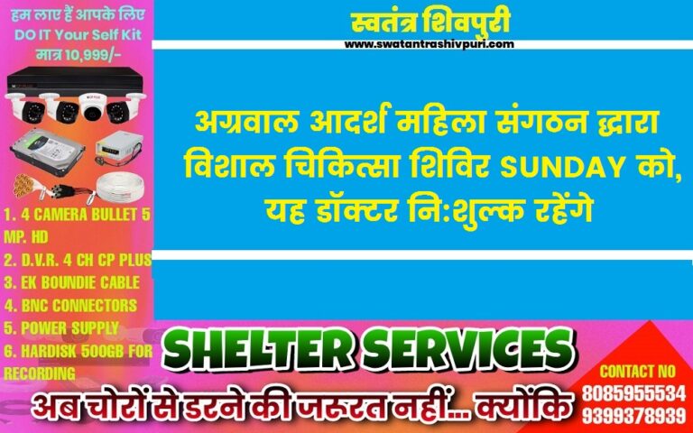 READ MOREशिवपुरी। शहर में अग्रवाल समाज के महिला मोर्चा द्धारा विशाल चिकित्सा शिविर का आयोजन किया जा रहा है। जिसमें शहर