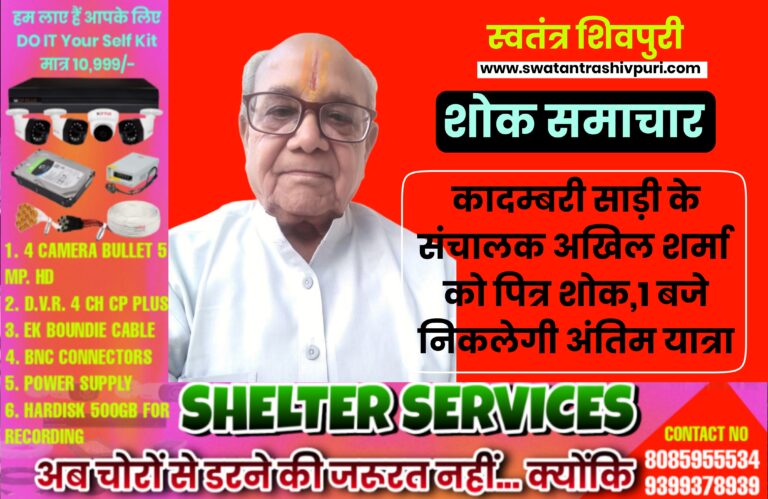 READ MOREशिवपुरी। आज शहर के प्रतिष्ठित बीडीओ रहे रामदुलारे शर्मा जी का 80 साल की उम्र में निधन हो गया। दीपावली