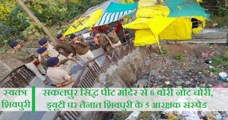 सकलपुर सिद्ध पीट मंदिर से 6 बोरी नोट चोरी, ड्यूटी पर तैनात शिवपुरी के 5 आरक्षक संस्पेड