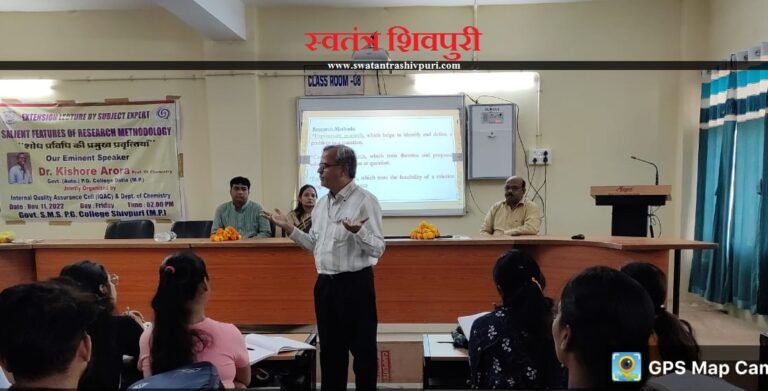 READ MOREशिवपुरी। शासकीय श्रीमंत माधवराव सिंधिया स्नातकोत्तर महाविद्यालय शिवपुरी में आज को “शोध प्रविधि की प्रमुख प्रवृत्तियाँ” विषय पर एक व्याख्यान