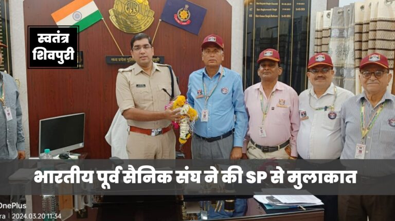 READ MOREशिवपुरी। खबर पुलिस अधीक्षक कार्यालय से आ रही है। जहां इंडियन वेटरन्स ऑर्गेनाइजेशन ने एसपी शिवपुरी से मुलाकात की है।