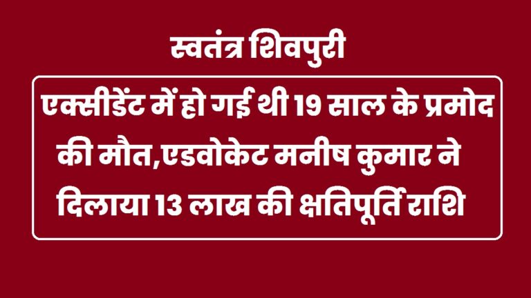 READ MOREशिवपुरी। बीते रोज माननीय न्यायालय ने एक एक्सीडेंट के मामले में मृतक के परिजनों को 13 लाख रूपए की क्षतिपूर्ति