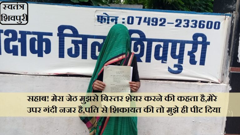 READ MOREशिवपुरी। खबर पुलिस अधीक्षक कार्यालय से आ रही है।। जहां एक महिला ने अपने ही जेठ पर गंभीर आरोप लगाए