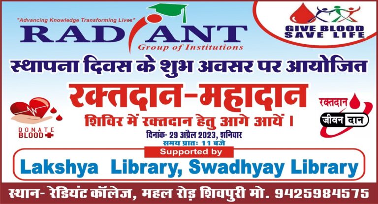 READ MOREशिवपुरी। जिले के प्रतिष्ठित रेडिएंट ग्रुप ऑफ इंस्टीट्यूशंस के ककरवाया स्थित कैंपस की स्थापना के अवसर पर प्रति वर्ष की