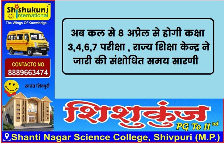 READ MOREशिवपुरी। जिले के सरकारी स्कूलों में 5 अप्रैल से शुरू होने वाली कक्षा 3ए 4ए 6ए व 7 की स्थानीय