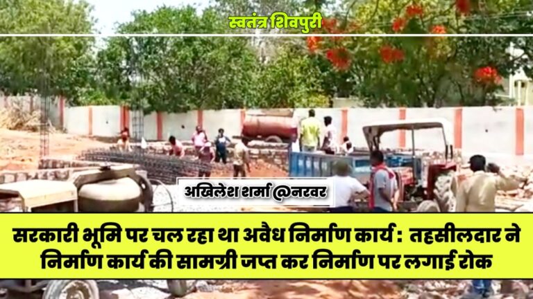 नरवर तहसीलदार ने लगाई अवैध अतिक्रमण पर रोक, निर्माण कार्य की सामग्री जप्त कर थाने में रखी