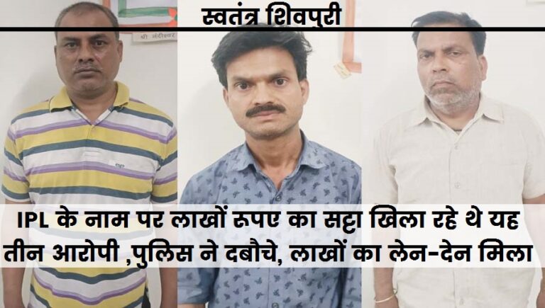 READ MOREशिवपुरी। पुलिस अधीक्षक शिवपुरी रघुवंश सिह भदौरिया द्वारा अवैध रुप से आईपीएल सट्टा चलाने वालो के विरूध्द कार्यवाही करने हेतु