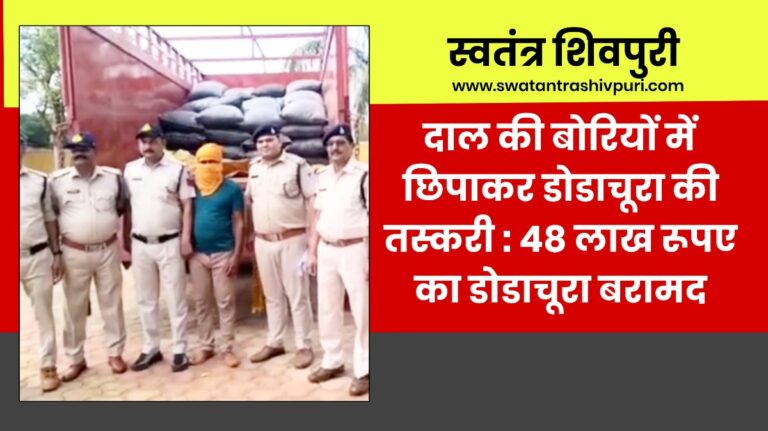 READ MOREशिवपुरी। खबर कोलारस थाना क्षेत्र से आ रही है जहां कोलारस पुलिस ने 48 लाख रुपए का डोडाचूरा पकड़ा है।