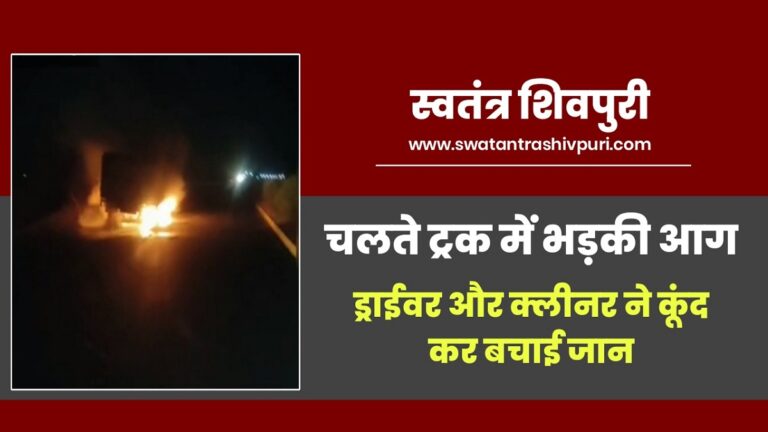 शिवपुरी। खबर जिले के दिनारा थाना क्षेत्र से आ रही हैैै। जहां फोरलेन हाईवे पर एक चलते ट्रक में अचानक