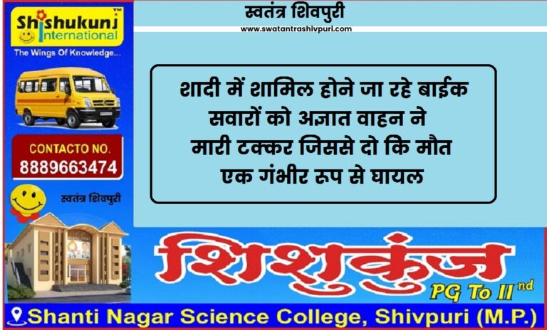 READ MOREकोलारस। खबर शिवपुरी जिले के कोलारस अनुविभाग के लुकवासा चौकी क्षेत्र में देहरदा पुल के पास अज्ञात वाहन ने बाइक