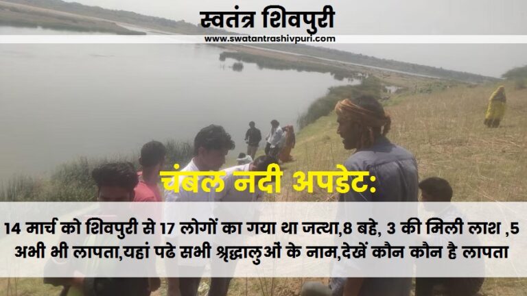 READ MOREशिवपुरी। आज की सबसे बडी खबर राजस्थान से आ रही है। जहां आज चंबल नदी में शिवपुरी के 17 श्रृद्धालुओ