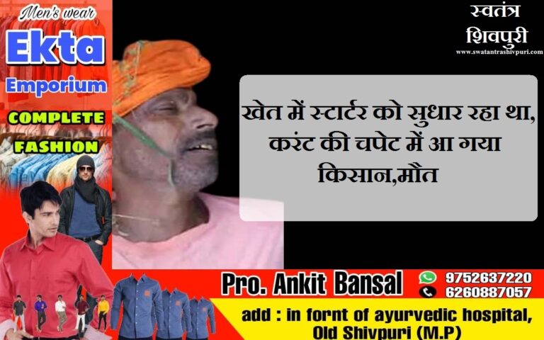 READ MOREकोलारस। खबर जिले के कोलारस अनुविभाग के हरिपुर गांव में खेत में स्टार्टर को सुधार रहा एक किसान करंट की