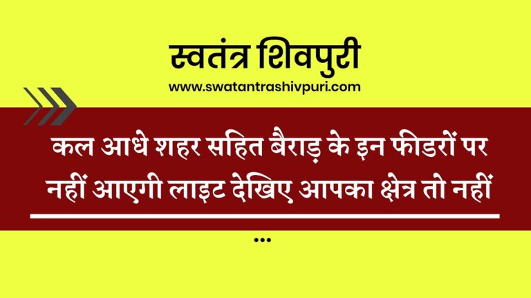 READ MOREशिवपुरी। आवश्यक रखरखाव का कार्य किए जाने हेतु 33 के.व्ही.हातोद पम्प फीडर, 11 के.व्ही. गाजीगढ़ फीडर, 11 के.व्ही. फतेहपुर, मनियर