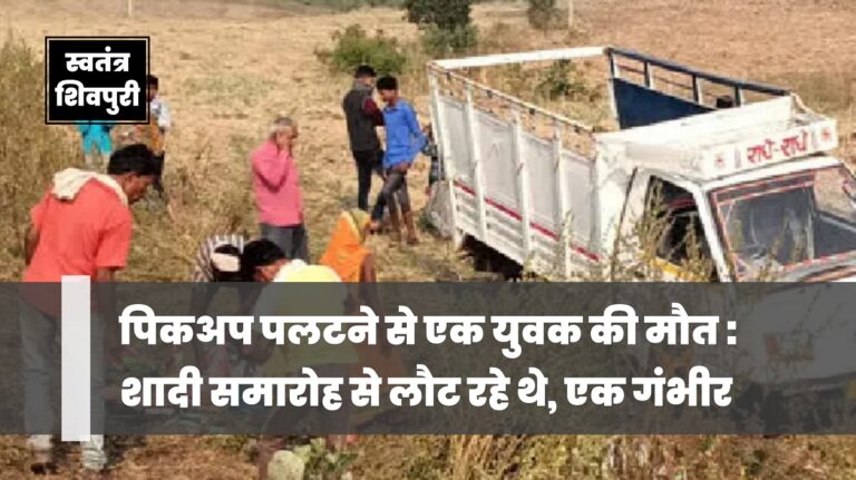 READ MOREशिवपुरी। खबर जिले के दिनारा क्षेत्र से आ रही है। जहां एक पिकअप अनियंत्रित होकर पलट गई। वाहन के पलटने
