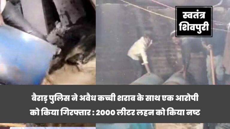 READ MOREशिवपुरी। खबर जिले के बैराड़ थाना क्षेत्र से आ रही है। जहां पुलिस ने भारी मात्रा में कच्ची शराब लहान