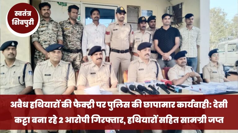 READ MOREशिवपुरी। खबर जिले के बैराड़ थाना क्षेत्र से आ रही है। जहां पुलिस ने नरैयाखेडी गांव में अवैध हथियार बनाने