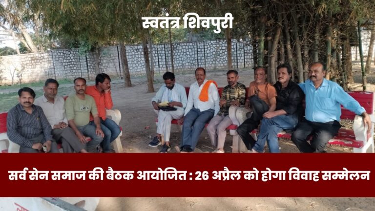 शिवपुरी। सर्वसेन समाज द्वारा बुधवार को सामूहिक विवाह सम्मेलन की तैयारियों को लेकर दर्रोनी तिराहा आस्था गार्डन में एक बैठक