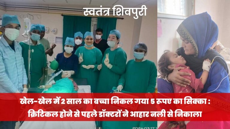 READ MOREशिवपुरी। खेल-खेल में दो वर्षीय मासूम बच्चे ने 5 रूपए का सिक्का निगल लिया। जब सांस लेने और निगलने में
