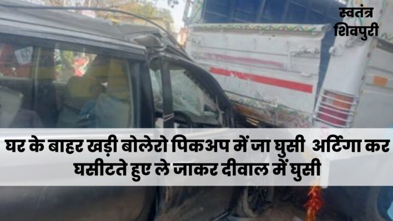 घर के बाहर खडी BULERO पिकअप में जा घुसी अर्टिगा CAR ,घसीटते हुए ले जाकर दीवाल में जा घुसी