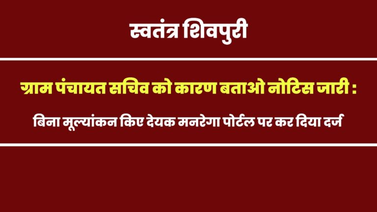 READ MOREशिवपुरी। जिला पंचायत के मुख्य कार्यपालन अधिकारी उमराव सिंह मरावी ने बिना मूल्यांकन किए देयक मनरेगा पोर्टल पर दर्ज किए