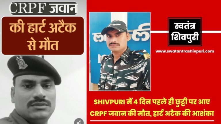 READ MOREशिवपुरी। खबर जिले के बामौरगांव से है जहां छुट्टी पर आए हुए सीआरपीएफ जवान की अचनाक मौत हो गई है।