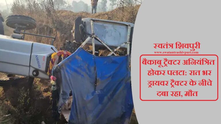 READ MOREशिवपुरी। खबर जिले के रन्नौद थाना क्षेत्र के धंधेरा गांव के पास एक ट्रैक्टर सोमवार की रात बेकाबू होकर पलट
