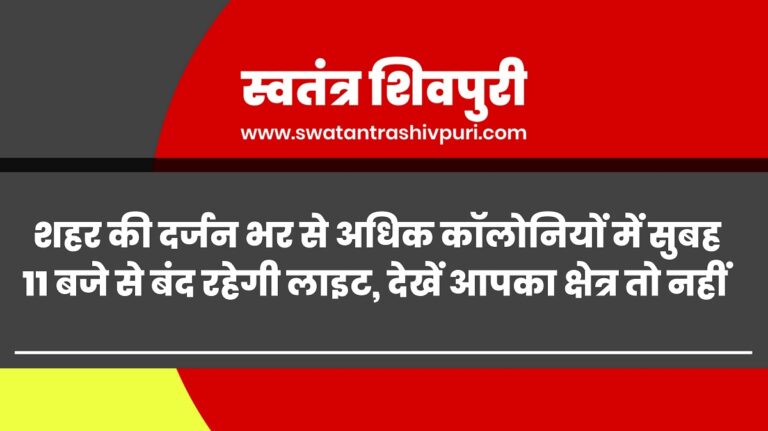 READ MOREशिवपुरी। आवश्यक रखरखाव का कार्य किए जाने हेतु 33 के.व्ही. बालाजीधाम, 33 के.व्ही. डाकबंगला फीडर एवं 33 के.व्ही. खरई फीडर