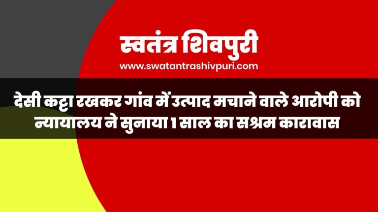 READ MOREशिवपुरी। माननीय न्यायिक मजिस्ट्रेट प्रथम श्रेणी पोहरी अविनाश छारी द्वारा एक आरोपी को 01 वर्ष का सश्रम कारावास एवं अर्थदण्ड