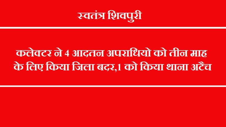 READ MOREशिवपुरी। कलेक्टर एवं जिला दण्डाधिकारी जिला शिवपुरी द्वारा पुलिस अधीक्षक जिला शिवपुरी की अनुशंसा पर आज जिले के निम्नलिखित 04