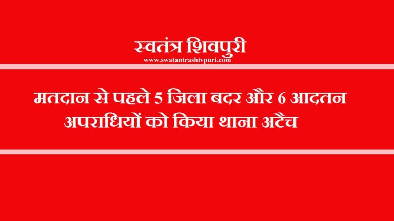 READ MOREशिवपुरी। आज कलेक्टर एवं जिला दण्डाधिकारी जिला शिवपुरी द्वारा पुलिस अधीक्षक जिला शिवपुरी की अनुशंसा पर दिनांक 06.11.2023 को जिले