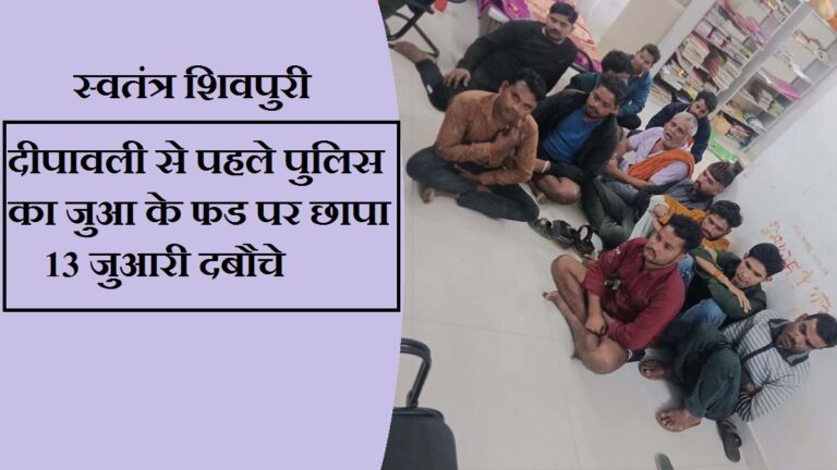 READ MOREशिवपुरी। खबर जिले के सुभाषपुरा थाना जुए के फड़ पर छापामार कार्रवाई करते हुए एक साथ 13 जुआरियों को गिरफ्तार