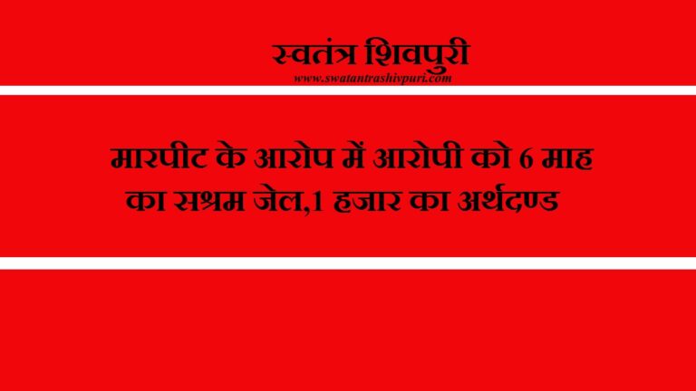 READ MOREशिवपुरी। माननीय न्यायिक मजिस्ट्रेट प्रथम श्रेणी, तहसील कोलारस जिला शिवपुरी के द्वारा आरोपी लक्ष्माण पुत्र मंगलिया आदिवासी उम्र-32 वर्ष, निवासी-