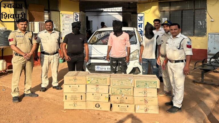 शिवपुरी। खबर शहर के देहात थाना क्षेत्र से आ रही है। जहां पुलिस ने कार से अंग्रेजी शराब की 16