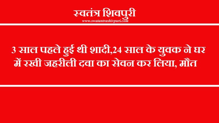 READ MOREशिवपुरी। जिले के बदरवास थाना क्षेत्र अंर्तागत आने वाले घीदखेड़ा गांव में रविवार की शाम एक 24 बर्षीय युवक ने
