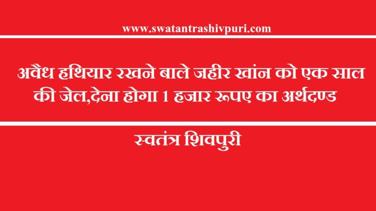 READ MOREशिवपुरी। आज माननीय न्यायिक मजिस्ट्रेट प्रथम श्रेणी, अमित प्रताप सिंह शिवपुरी के द्वारा अवैध हथियार के साथ पकडे गए एक