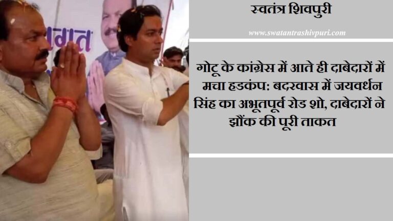 READ MOREशिवपुरी। आज कोलारस विधानसभा के बदरवास कस्बे में कांग्रेस सरकार के पूर्व मंत्री राधौगढ विधायक जयवर्धन सिंह के रोड शो