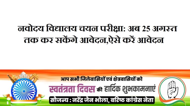 READ MOREशिवपुरी। जवाहर नवोदय विद्यालय पनघटा (नरवर) शिवपुरी में सत्र 2024 में कक्षा छठी में प्रवेश के लिए चयन परीक्षा के
