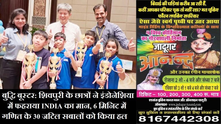 READ MOREशिवपुरी। इंडोनेशिया में आयोजित AIAMA Abacus Olympiad International Competition मैं बुद्धि बूस्टर के 3 विद्यार्थियों ने भारत के 40 से